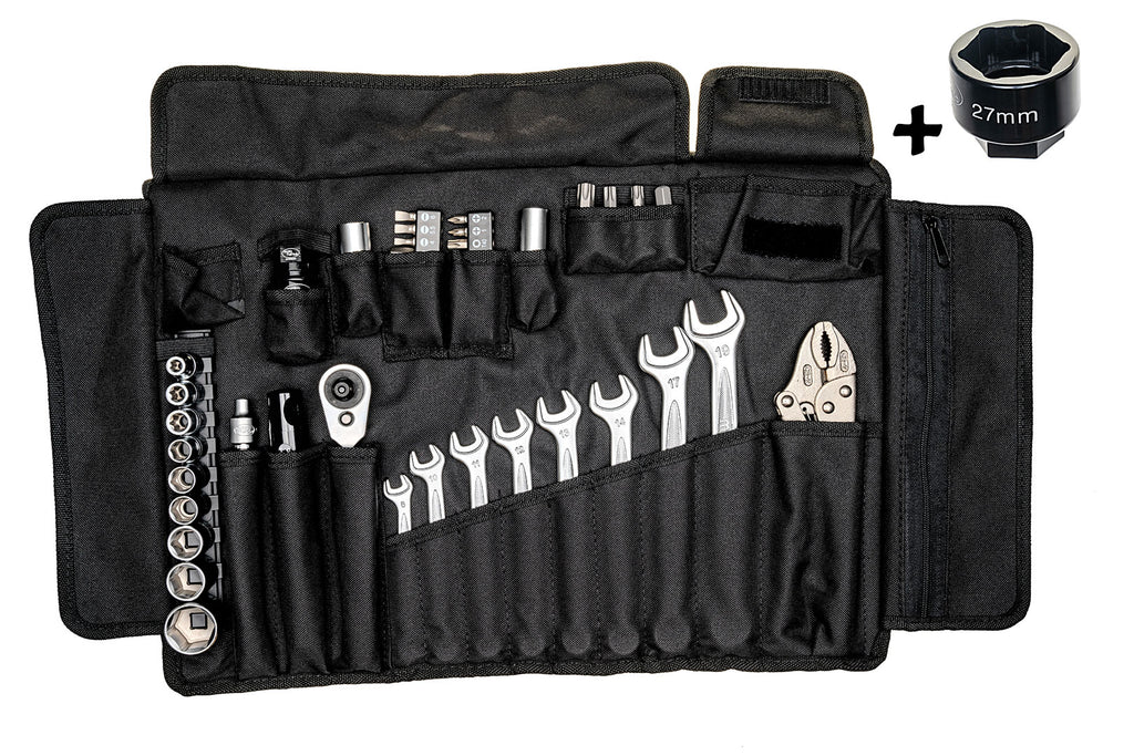 Das neue BMW-geeignete Pro-Serie Werkzeugset ist ab sofort bei Motohansa erhältlich. Diese neuen Werkzeugsätze sind professionelle Qualitätswerkzeuge mit lebenslanger Garantie. Mit diesen Qualitätssets erhalten Sie alle Werkzeuge, die für die routinemäßige Wartung, den Ausbau der Vorder- und Hinterräder, den Ausbau der Zündkerzen und die Einstellung von Hebeln, Lenkern und vielem mehr erforderlich sind. Von unschätzbarem Wert für den erfahrenen Motorradfahrer und den Heimwerker/Hobbyschrauber.